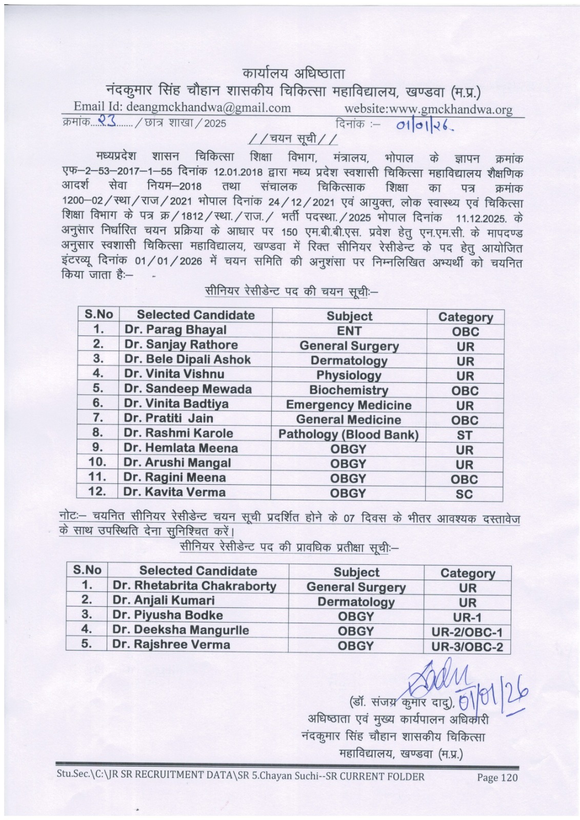 16.01.2026 Chayan Suchi Senior and Junior Resident