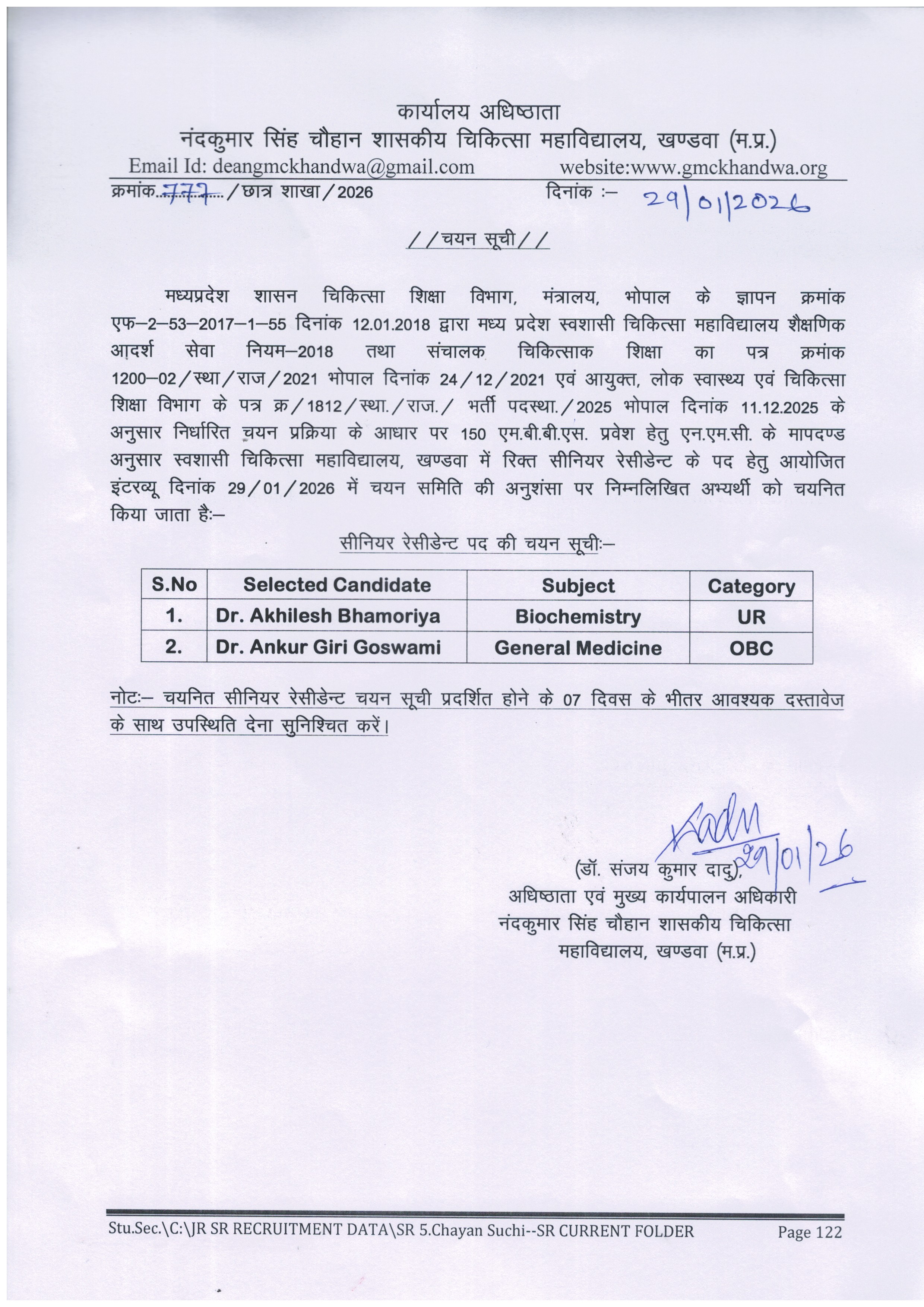 28.01.2026 Vigyapti for Senior Resident